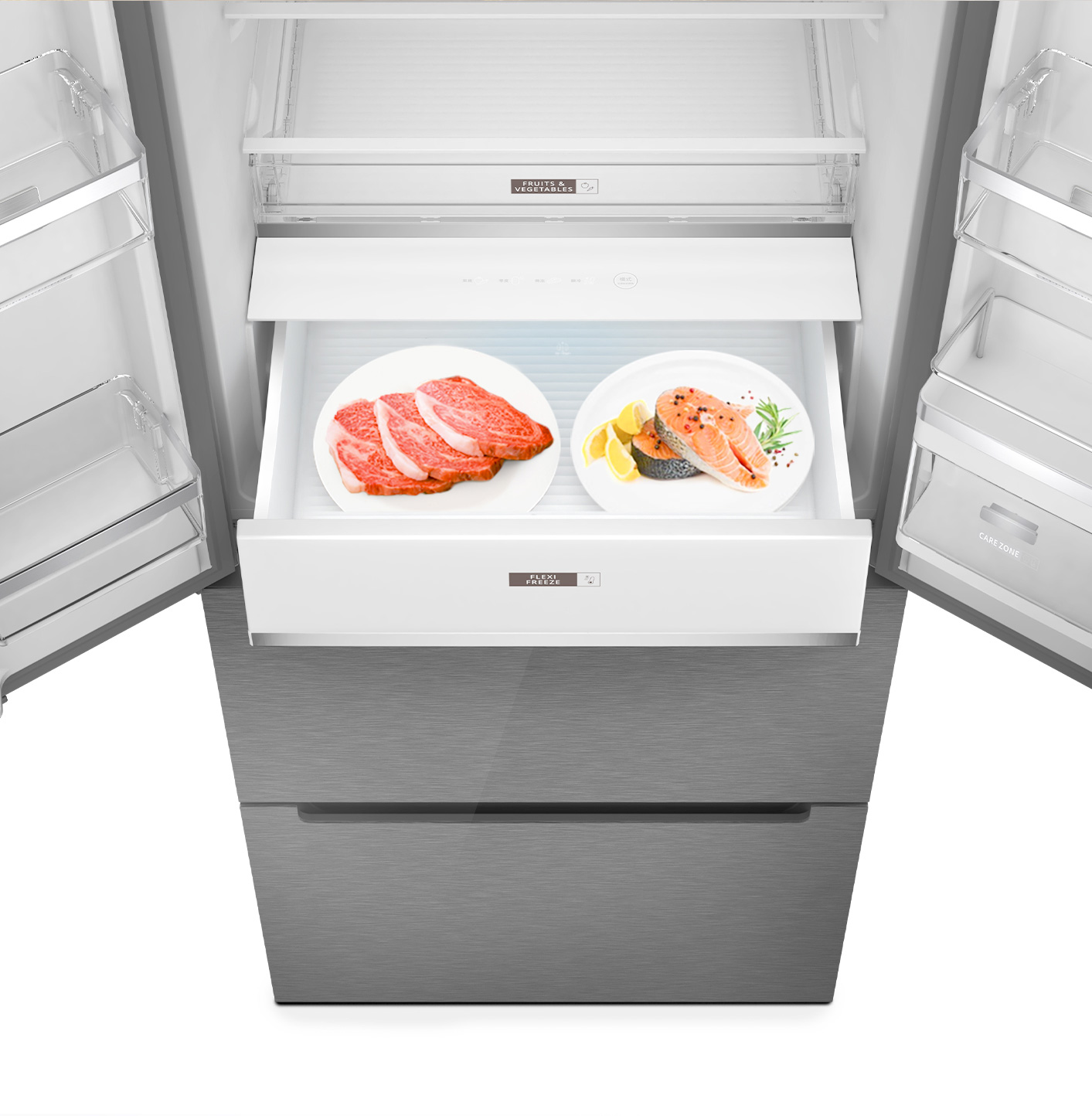 舱室温度可设置为0℃,零度模式特别适用于短期保存肉类和鱼虾,免除解冻烦恼,并可避免因冰晶刺破细胞壁造成解冻后血水大量渗出,更大限度地锁住营养与口感。