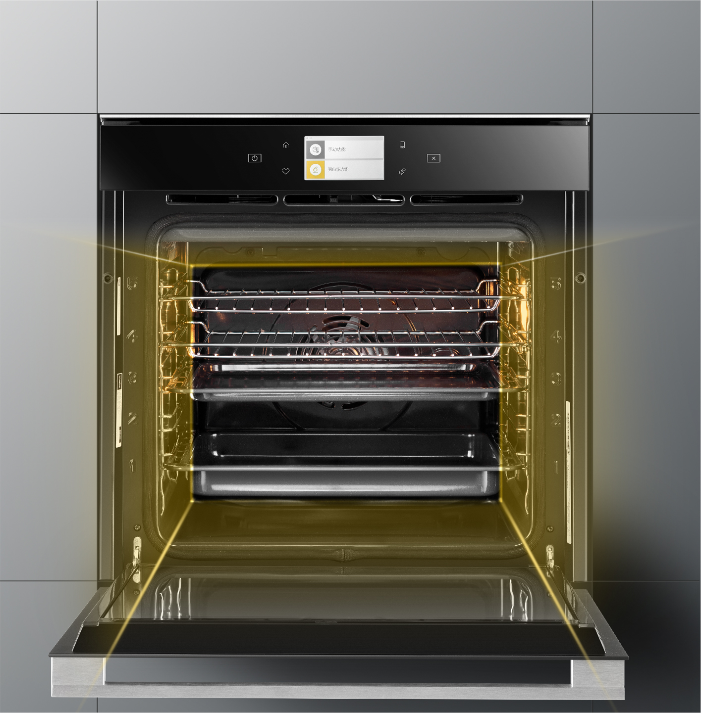 以超过400℃的高温,强力分解内腔飞溅残留的油脂和顽渍,使腔体一抹即净,洁净如新
