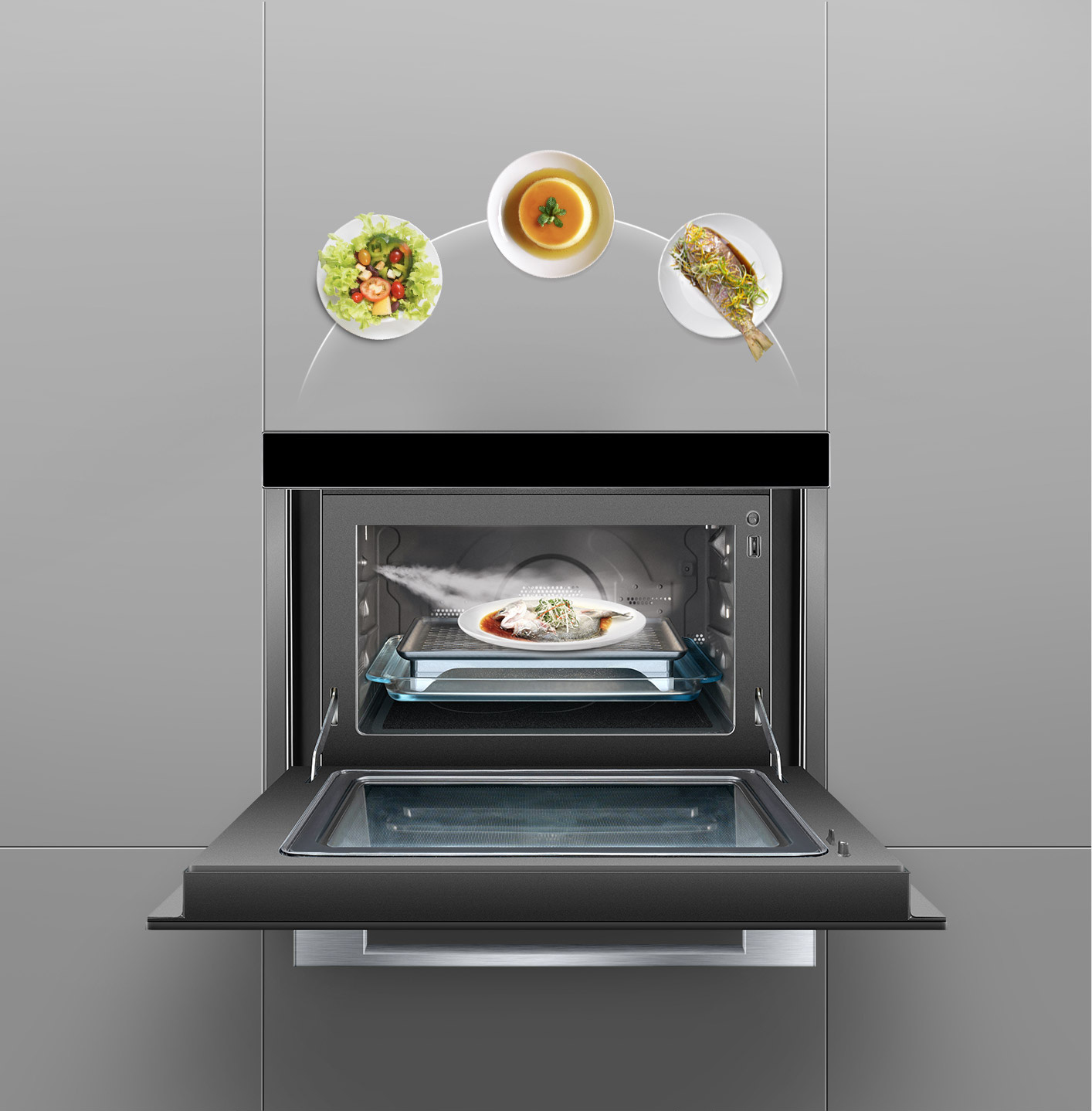 通过底部特制加热盘,均匀加热食物;同时顶部石英管可对食物烘烤着色,烹饪出诱人的金黄色泽。